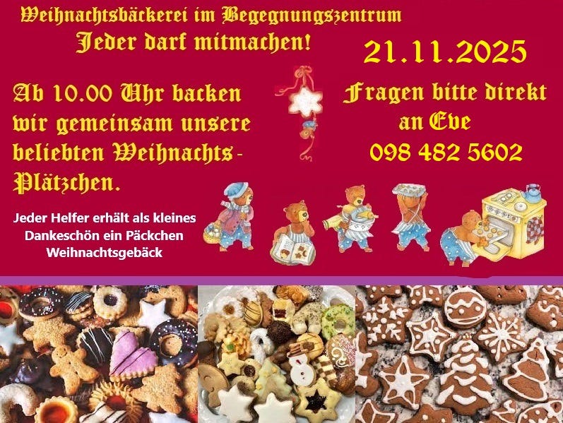 Mitmachen in der Weihnachtsbäckerei20.11.2015 Eine Reise in die Kindheit Peter HirsekornNov. 20, 2025TeilenMorgen, Freitag ab 10.00 Uhr im Begegnungszentrum Pattaya!Zurück