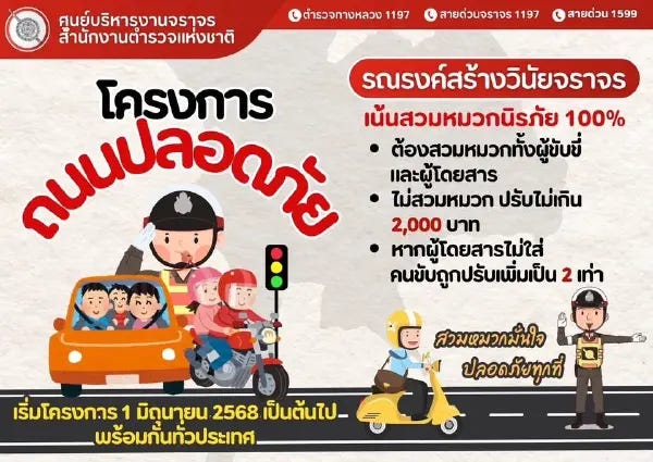 Die neue Maßnahme ist Teil des „Safe Roads Project“, einer groß angelegten Kampagne zur Verbesserung der Verkehrsdisziplin. Pol Lt Gen Nithithorn Chintakanon, Chef der Verkehrspolizei, erklärte, dass die Initiative vor allem auf stark befahrene Straßen, unfallträchtige Abschnitte und Bereiche rund um Schulen abzielt. „Helme schützen vor schweren Verletzungen. Wir wollen die Einhaltung der Vorschriften konsequent durchsetzen“, so Nithithorn.