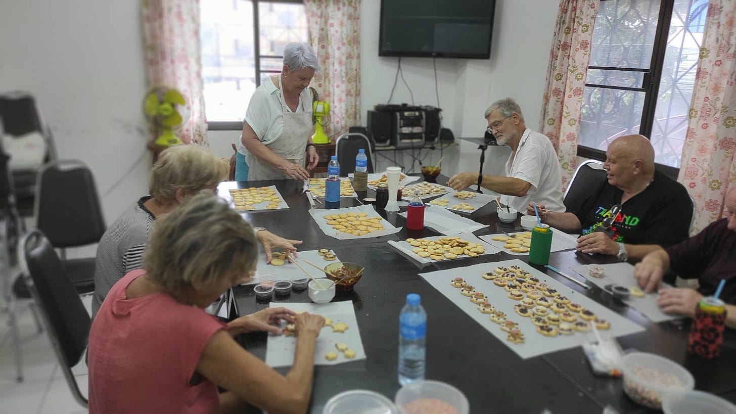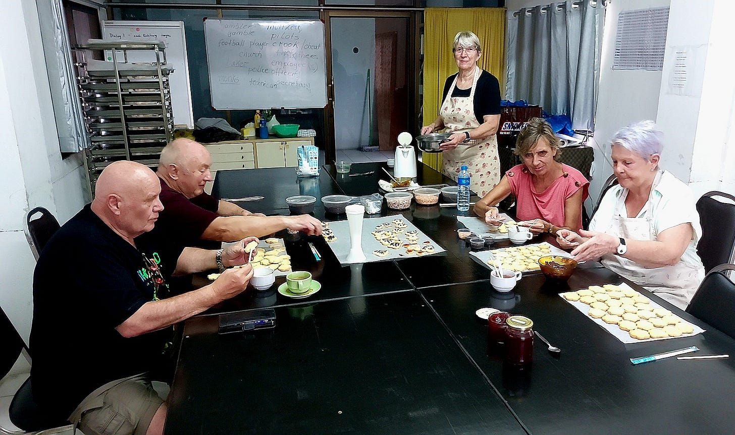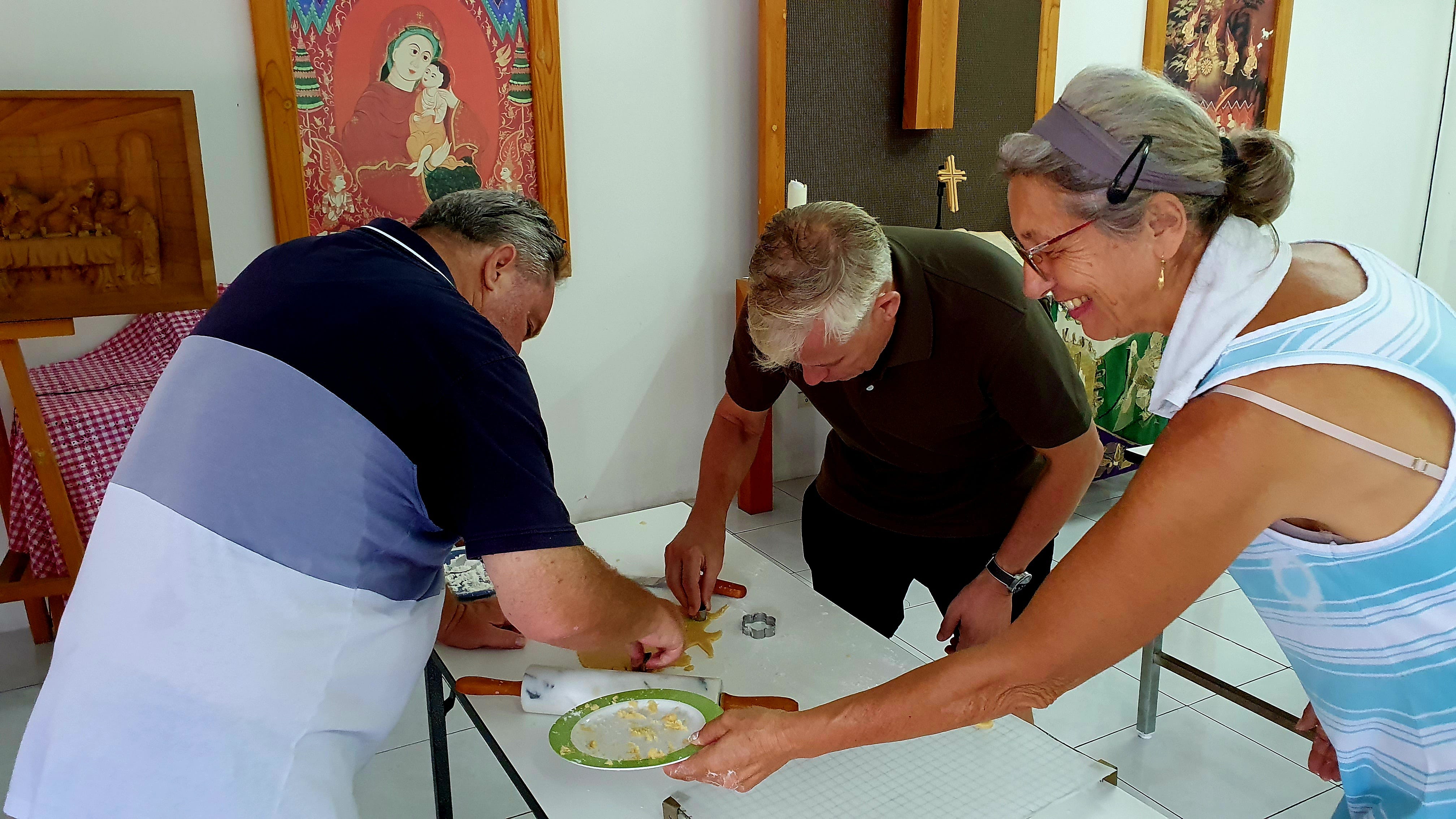 34 Frauen und Männer rollten Teig aus, stachen daraus weihnachtliche Figuren und buken die rohen Plätzchen.