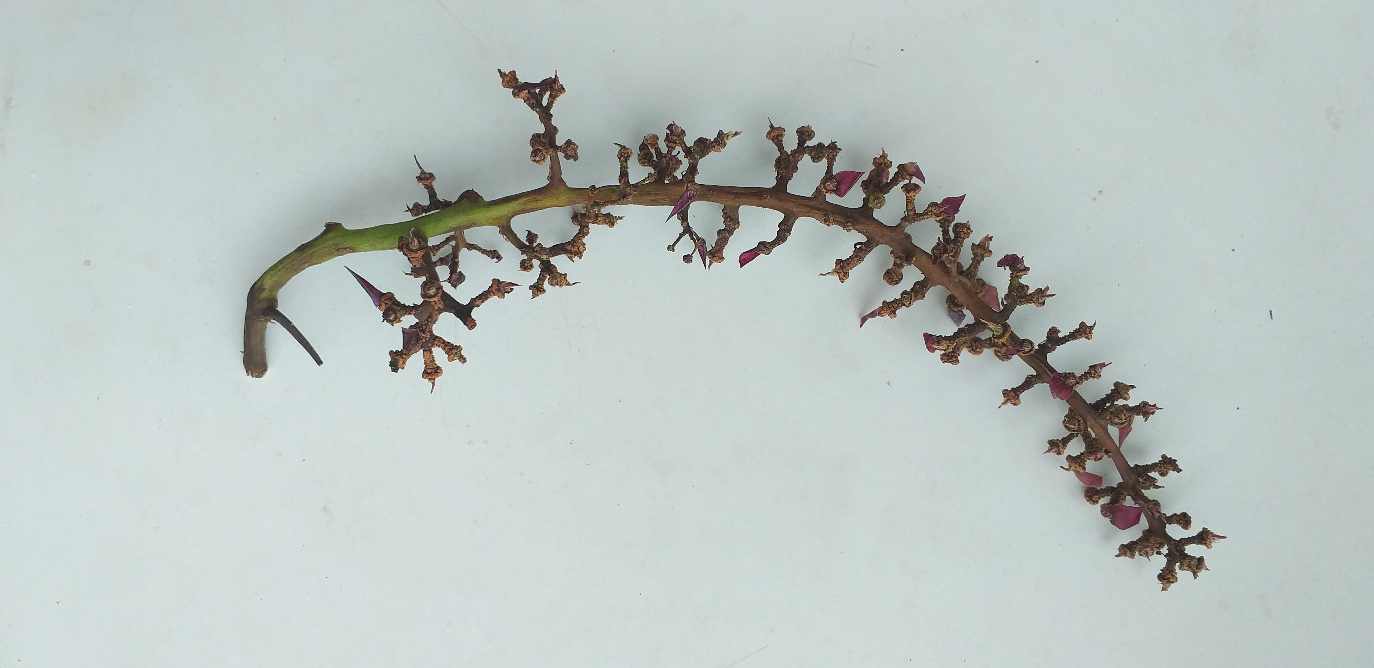 Dieses Bild zeigt eine faszinierende Skulptur aus den Überresten der Traubenpflanzen. Die leeren, knorrigen Ranken ähneln einem menschlichen Skelett, das in stiller Eleganz das Ende eines Wachstumszyklus markiert. Die zarten, getrockneten Stängel wirken wie Knochen, die in einer harmonischen Anordnung zusammengefügt sind, um eine symbolische Verbindung zwischen Leben, Ernte und Vergänglichkeit herzustellen.