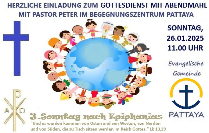 Die christliche Botschaft macht nicht vor Volks- und Landesgrenzen Halt. Sie gilt ausnahmslos allen Menschen. Darum geht es am dritten Sonntag nach Epiphanias. Bereits Jesus und seine Jünger haben sich den Nachbarn des Volkes Israel zugewandt, haben Ausländer geheilt und mit Samaritanern debattiert. Auch die Vorfahren Jesu sind international: wie die Moabiterin Rut, die mit ihrer Schwiegermutter in fremdes Land zog und ihre Religion annahm. Gottes Liebe kennt keine Grenzen – bezeugen die Apostel und Propheten. So wird auch das Reich Gottes bunt und vielsprachig sein. „Es werden kommen von Osten und von Westen, von Norden und von Süden, die zu Tisch sitzen werden im Reich Gottes“.