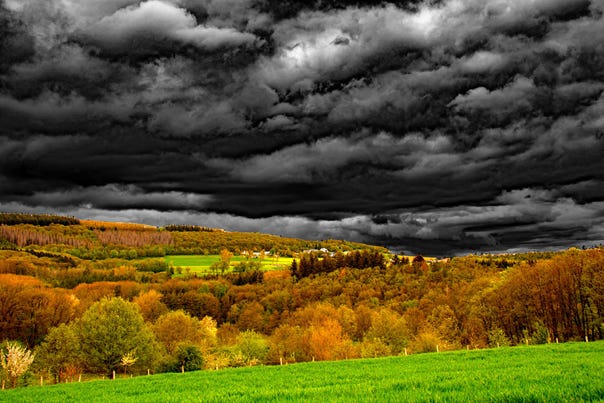 Es ist, als würde die Natur für einen kurzen Moment den Atem anhalten: Über der Erde ein drohendes Meer aus Sturmwolken, darunter ein Teppich aus Farben und Licht. Der Kontrast zwischen Dunkelheit und Leuchten verleiht der Szene eine beinahe dramatische Spannung – ein Augenblick zwischen Ruhe und herannahendem Unwetter. Ruhe bewahren lautet somit unsere Devise. Gruss in die Runde von Pius Acker