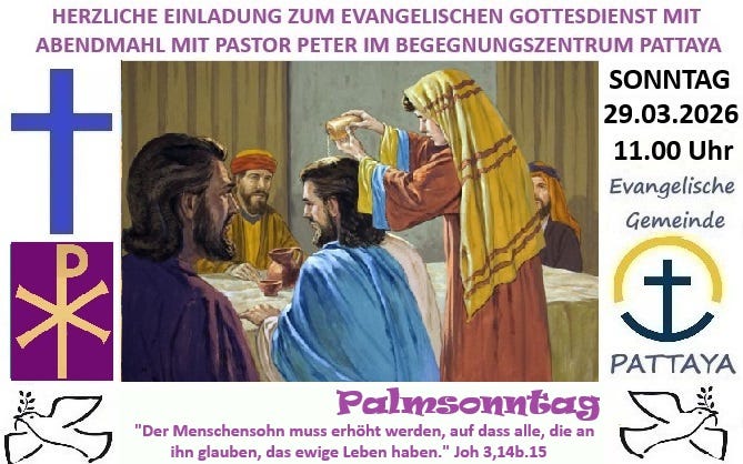 Der nächste Gottesdienst im Begegnungszentrum Pattaya findet am Sonntag, 29.03.2026, statt.